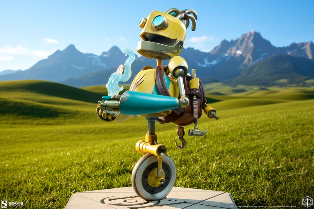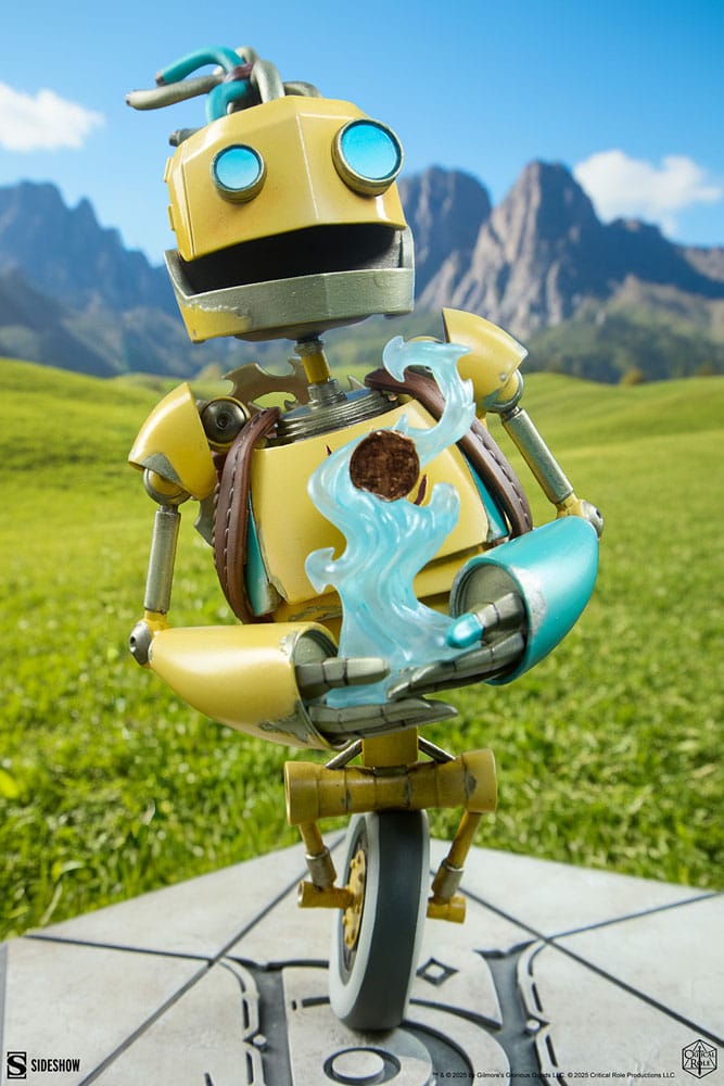 Smiley day to ya! Fresh Cut Grass, also known as FCG, brings an empathetic attitude and an optimistic resolve to the emergent band of heroes known as Bells Hells. This curious construct helps his friends with thoughtful care while seeking moral guidance from the Coin of the Changebringer. The Fresh Cut Grass - Bells Hells Statue captures their campaign-debut appearance, sporting a worn Aeormaton body that shows slight distress from past adventures. FCG balances on a central wheel, ready to roll alongside their allies into all manner of action and lend a helping hand - or a buzz saw, as the battle requires.