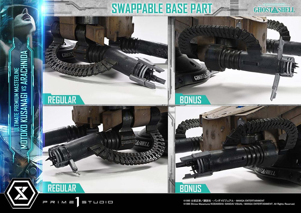 This bonus version includes an alternate set of manipulator arms with a deployed Gatling gun, recreating the intense moment when Kusanagi is ambushed by a hail of gunfire during her infiltration. The tension of that instant comes vividly back to life in your display.